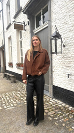 Eenheid prijs PerDe Maren Jacket straalt moeiteloze elegantie uit met een ontspannen pasvorm. Gemaakt van een zachte suèdelook stof, met een ritssluiting, drukknoopdetails en een iets oversized silhouet — perfect om te dragen in elk seizoen. Combineer met een leren broek of jeans voor een tijdloze, chique look.