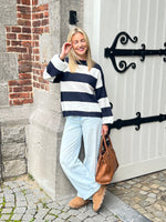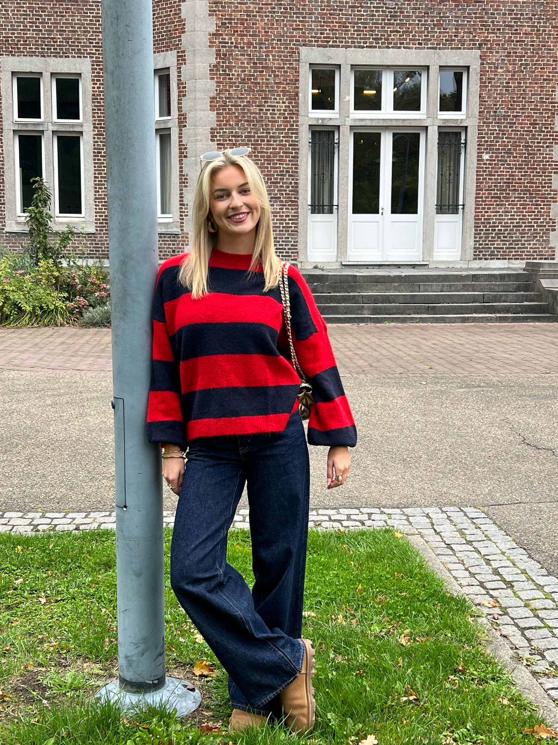 De Amber Sweater is een speels en cozy statement piece met brede strepen in opvallende kleuren. Het losse silhouet en de zachte textuur maken hem ideaal voor zowel casual dagen als frisse avonden. Combineer met je favoriete jeans voor een effortless, maar stijlvolle look.
