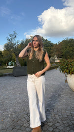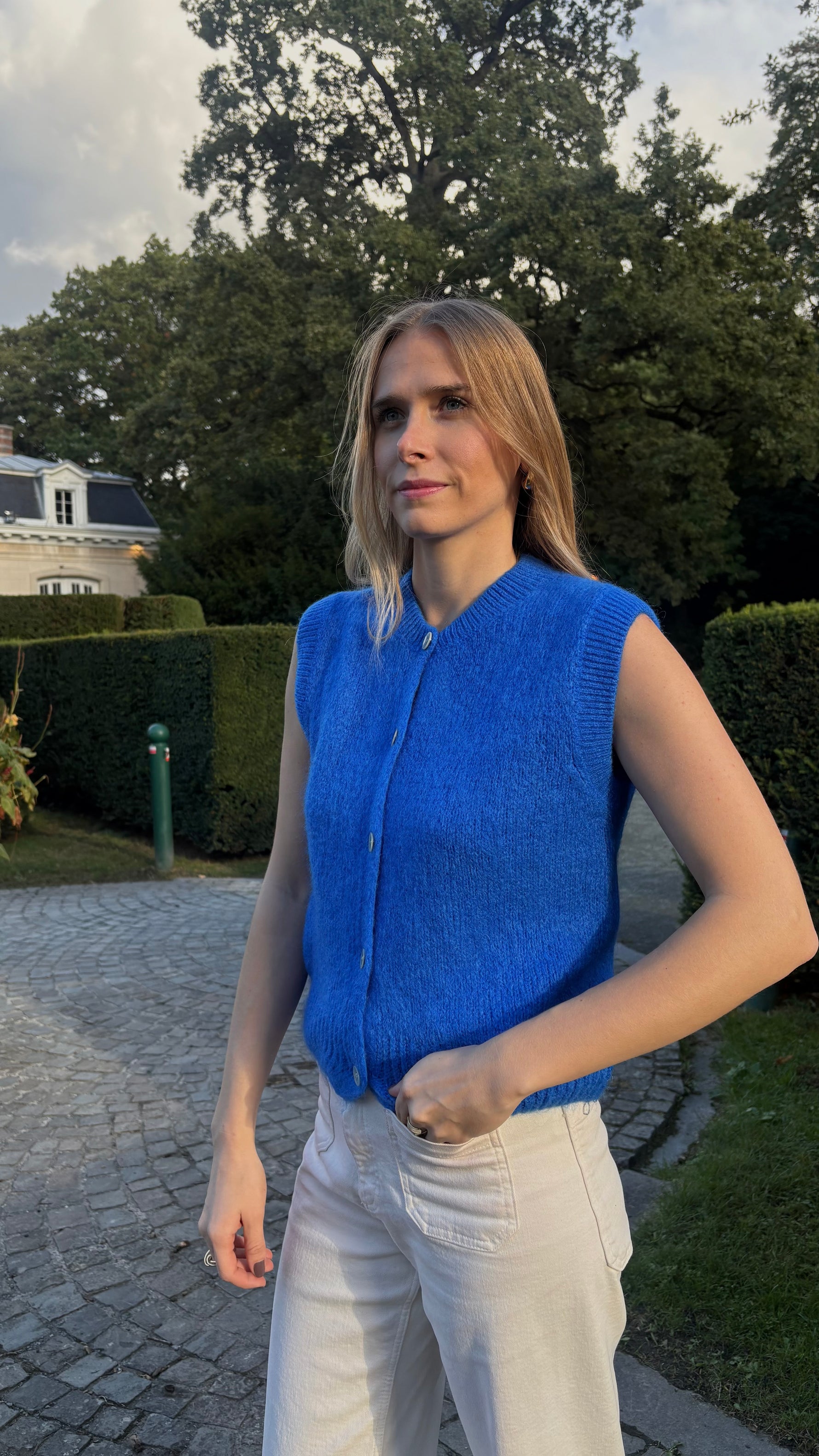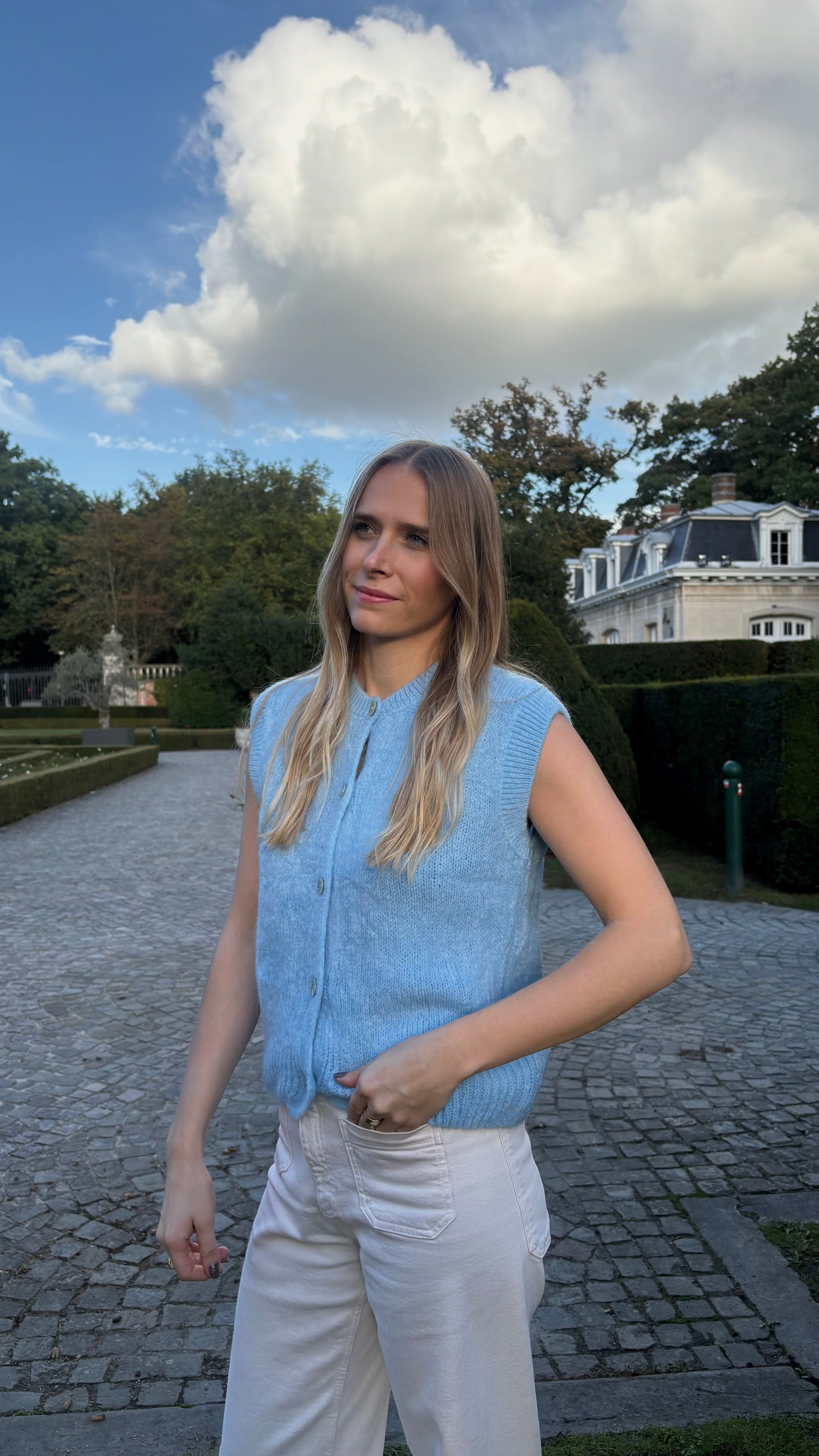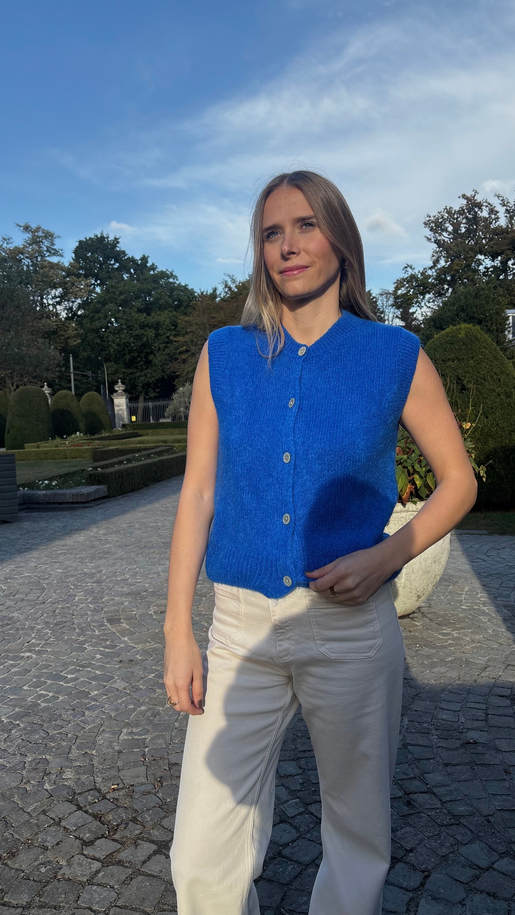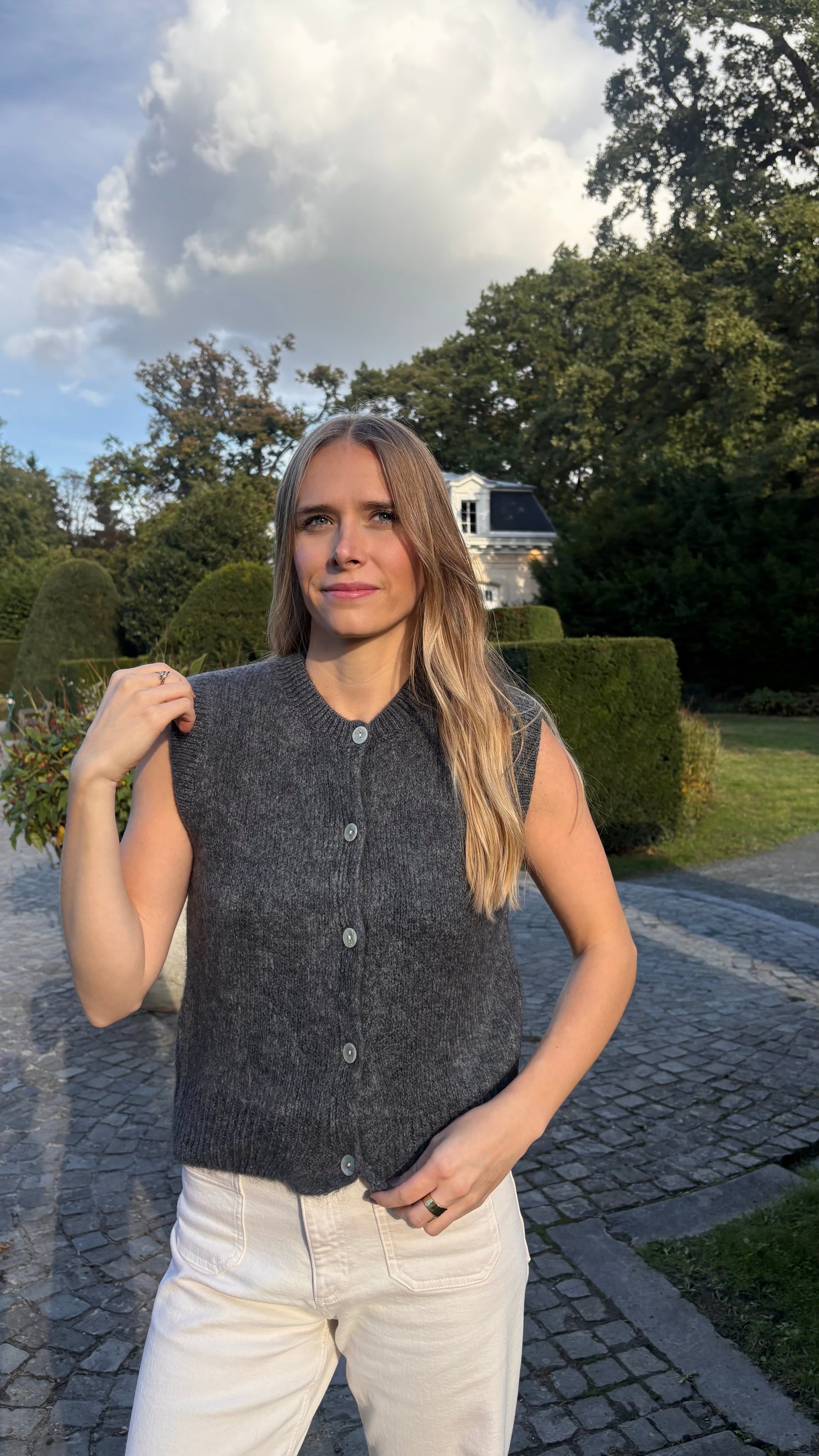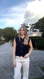 De Debardeur met knoopjes is een tijdloos en veelzijdig stuk dat zowel casual als chic gedragen kan worden. Het klassieke ontwerp met knoopsluiting en zachte textuur maakt dit item ideaal voor gelaagde outfits of gewoon zo, op zichzelf. Een echte must-have die je eenvoudig combineert met jeans, rokken of over een blouse.