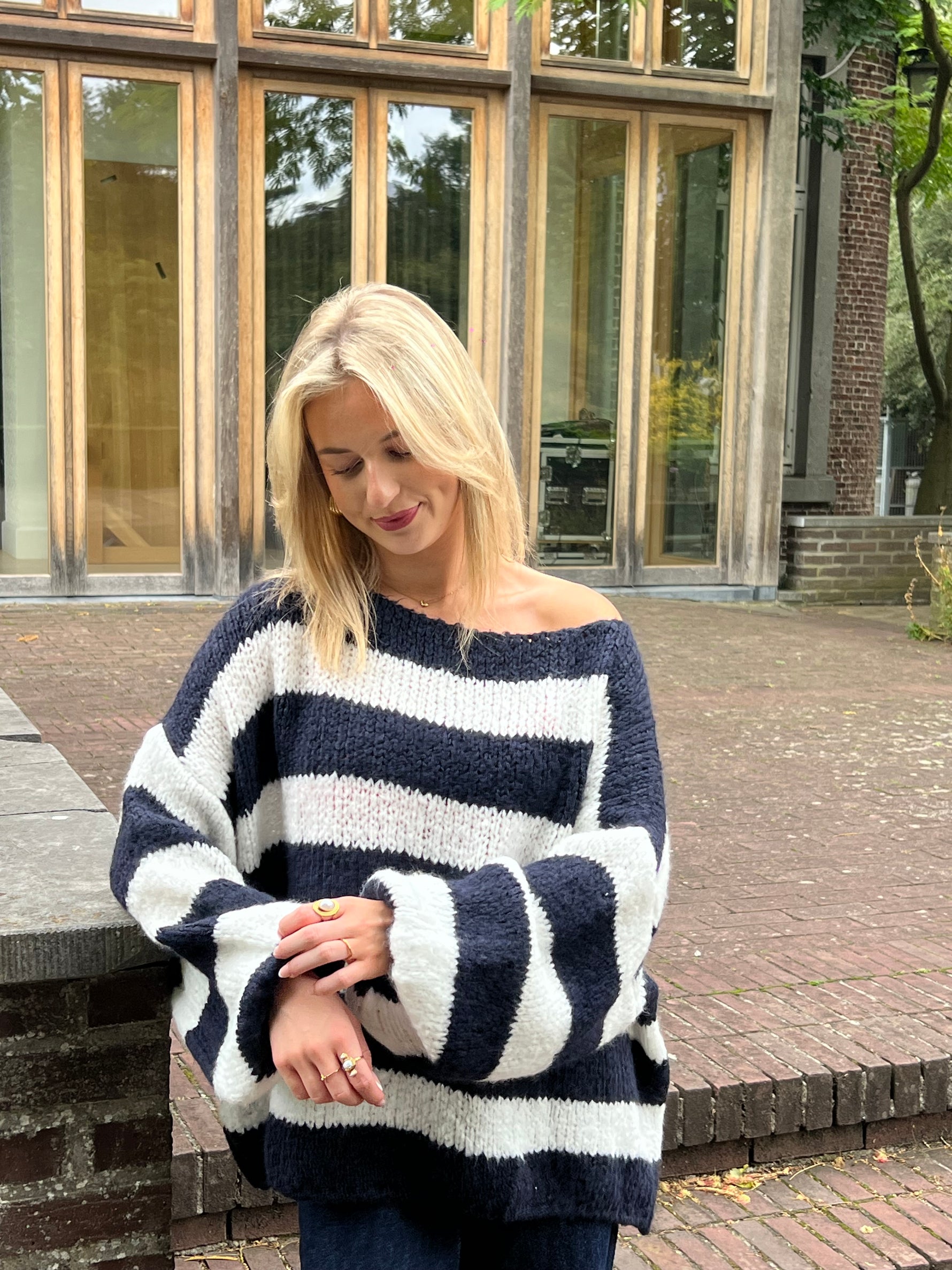 De Grace Off Shoulder Sweater straalt elegantie en vrouwelijkheid uit. Met zijn zachte, losse pasvorm en subtiele off-shoulder design is dit de perfecte trui voor een speelse maar toch stijlvolle look. Het gestreepte kleurenspel geeft de sweater een frisse en vrolijke uitstraling, ideaal voor zowel casual als geklede momenten.