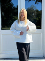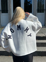 De Mommy Sweater is een cozy essential met een oversized pasvorm en wijde mouwen voor een moderne look. Op de achterkant staat de speelse opdruk MOMMY, die de trui een unieke twist geeft. Perfect voor een relaxte dag of een casual outfit met jeans. Verkrijgbaar in zwart, grijs en wit.