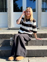 Met zijn vrolijke strepen en korte mouwen is dit de perfecte knit voor elk seizoen.