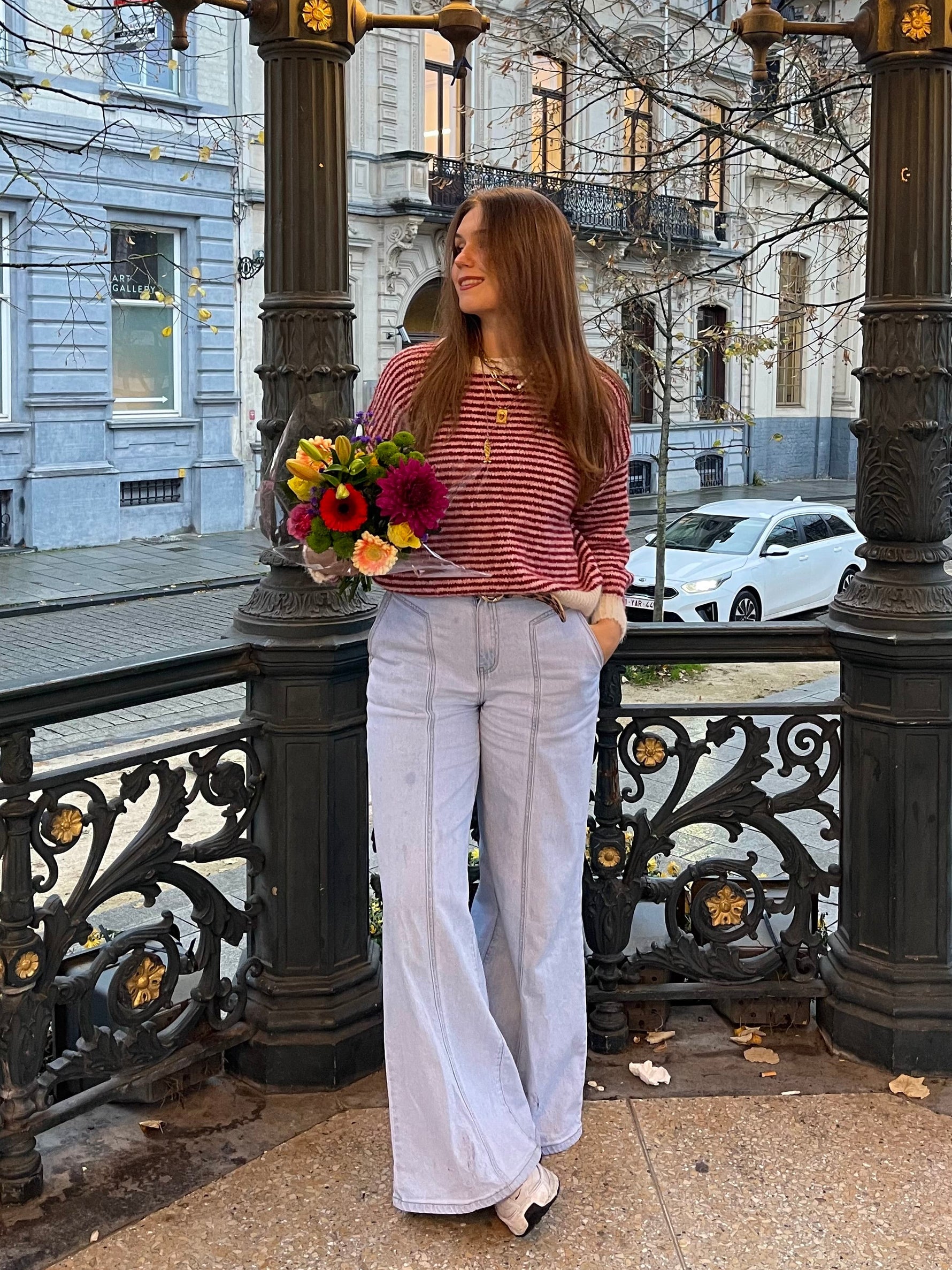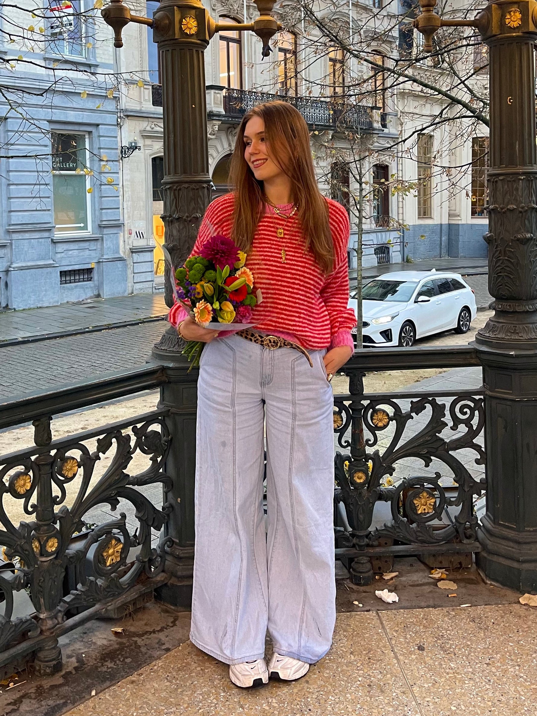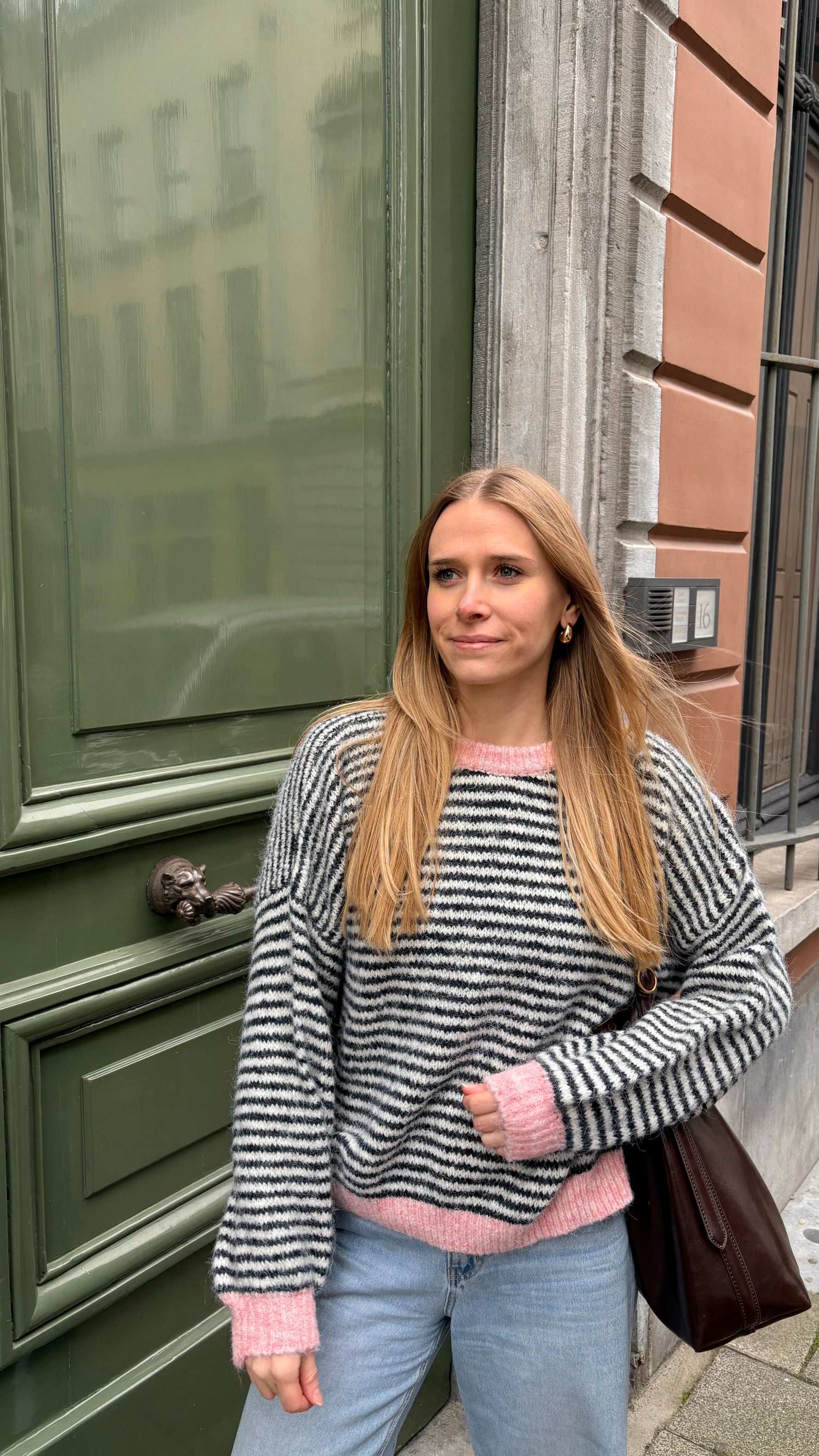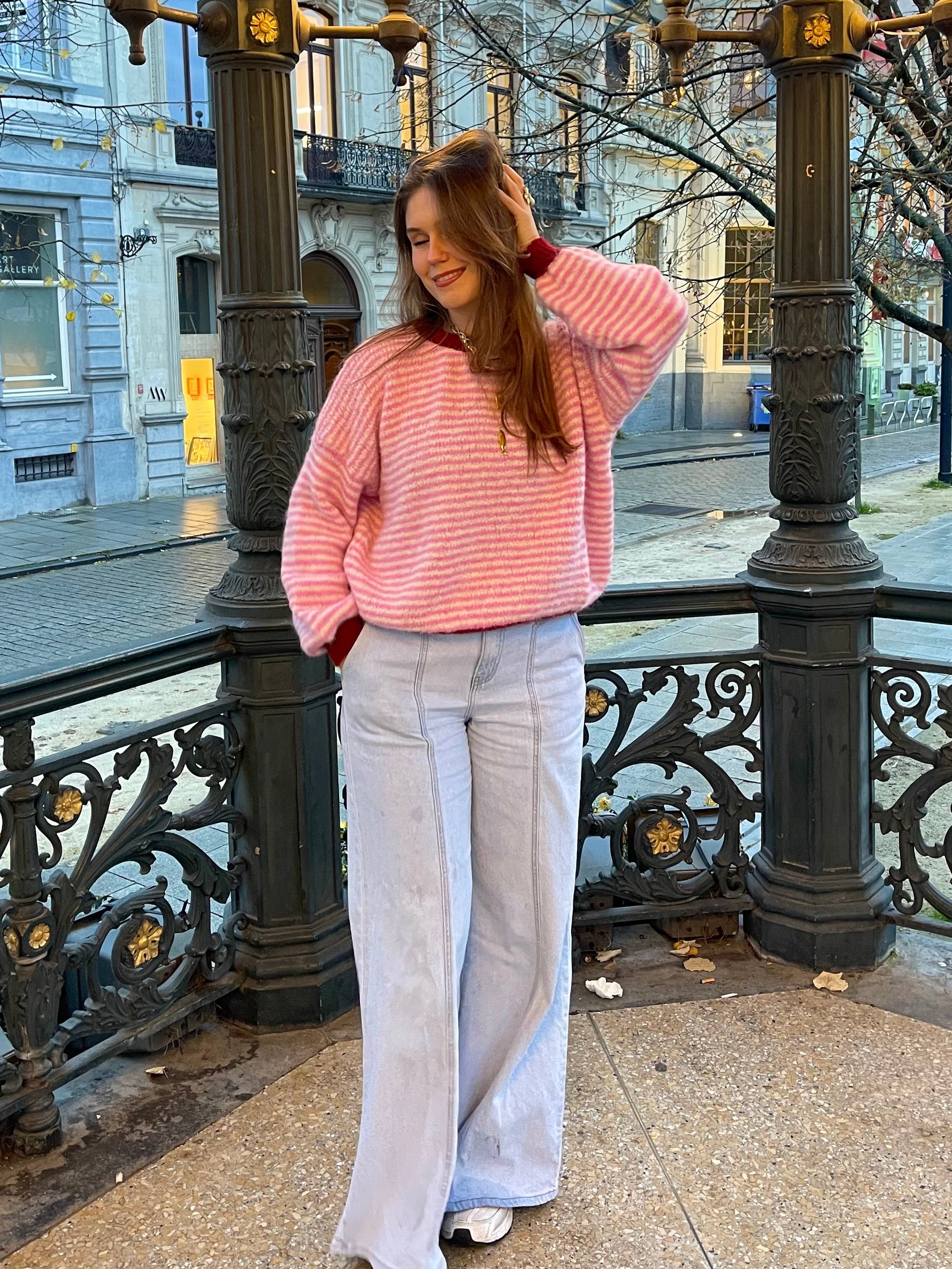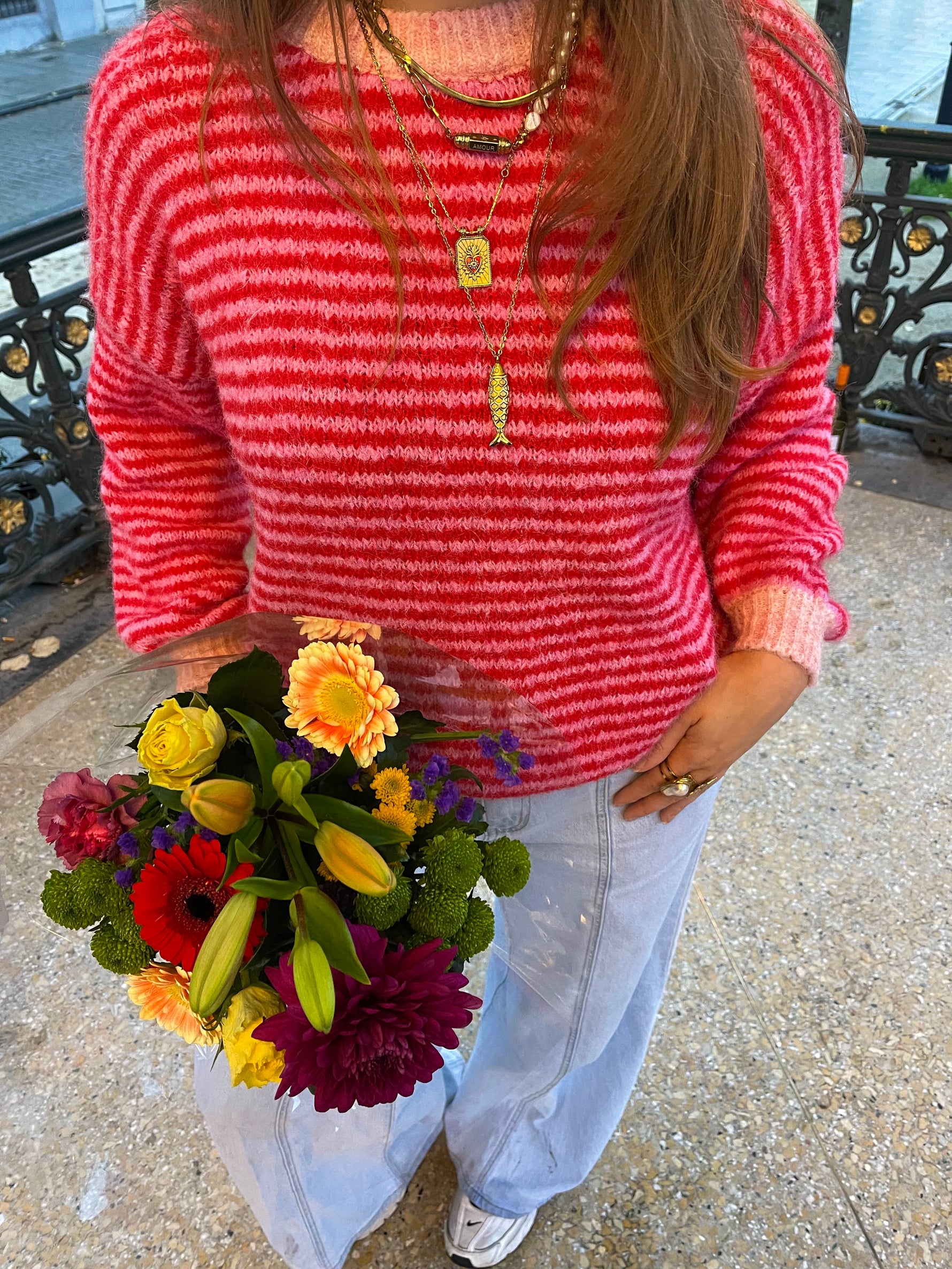 Eenheid prijs PerDe Claire Striped Sweater is een speelse, zachte trui met vrolijke strepen en contrasterende boorden. Dankzij de luchtige maar warme stof voelt hij heerlijk comfortabel aan, terwijl de opvallende kleuren elke outfit laten opvallen. Combineer hem met jeans voor een casual look of draag hem op een rok voor iets vrouwelijkers. Een echte eye-catcher voor elke dag!