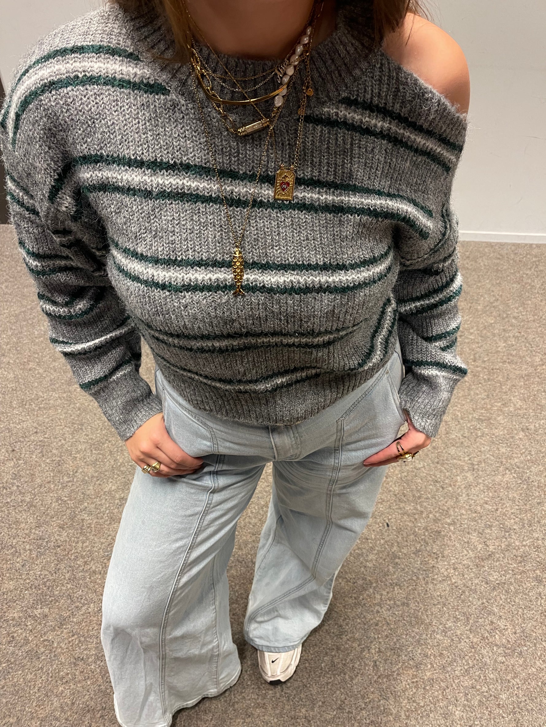 Eenheid prijs PerDe Kairo Sweater is een speelse, moderne knit met een subtiel streepdesign en een opvallende one-shoulder cut-out detail. De zachte, stretchy stof zorgt voor ultiem comfort, terwijl de asymmetrische halslijn een vrouwelijke, trendy touch geeft. Perfect om een basic jeans meteen een fashion-boost te geven.