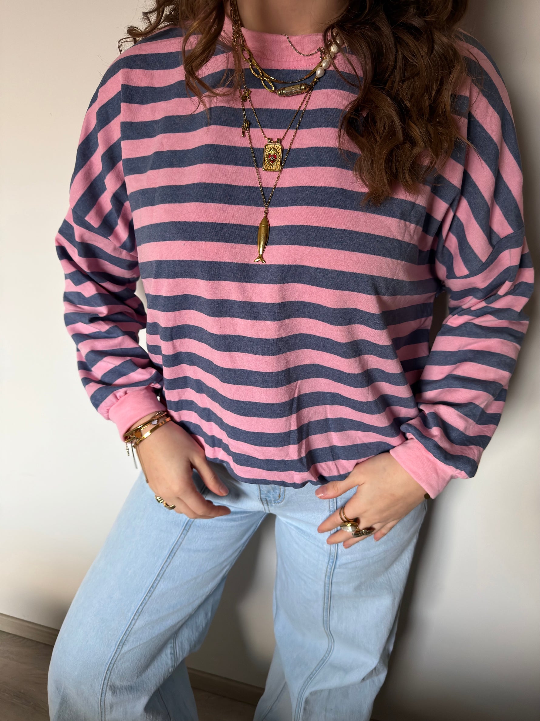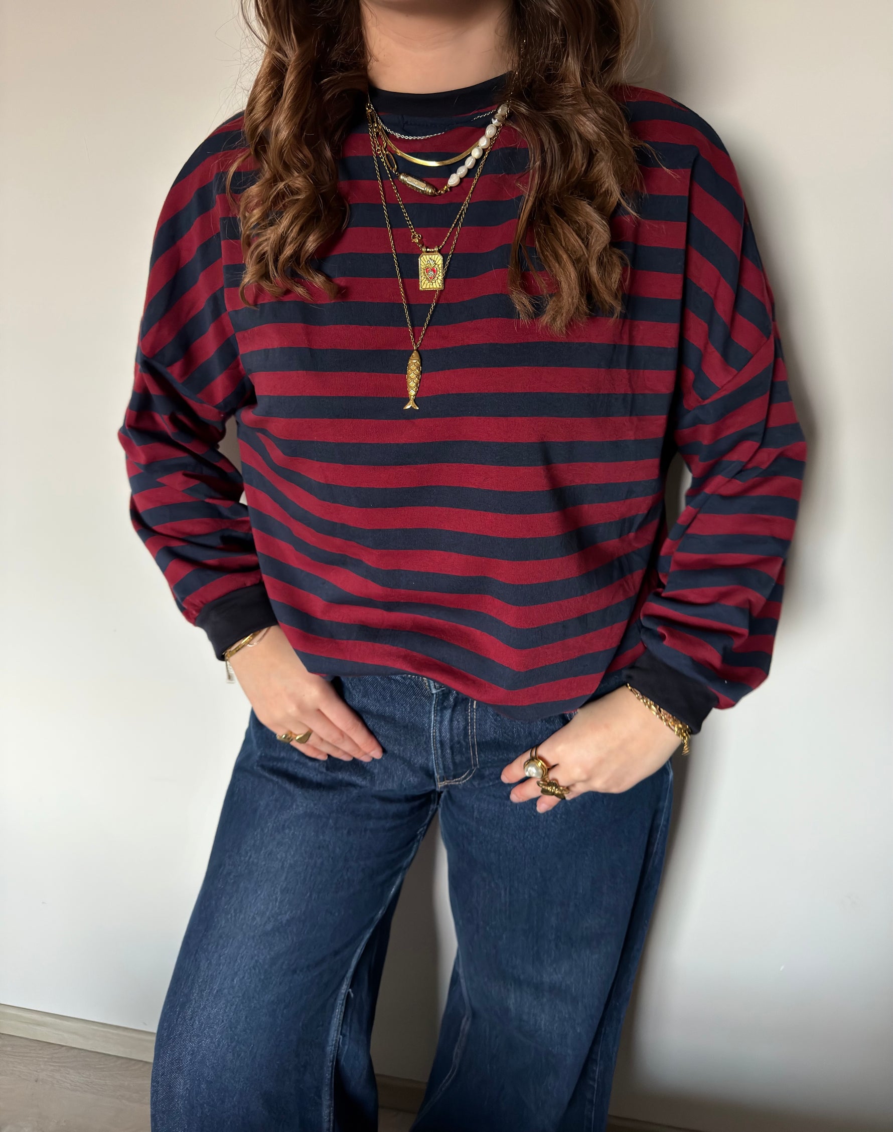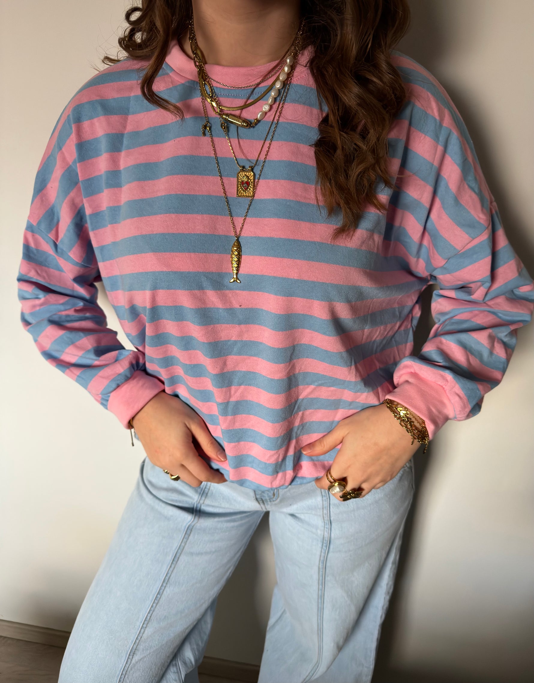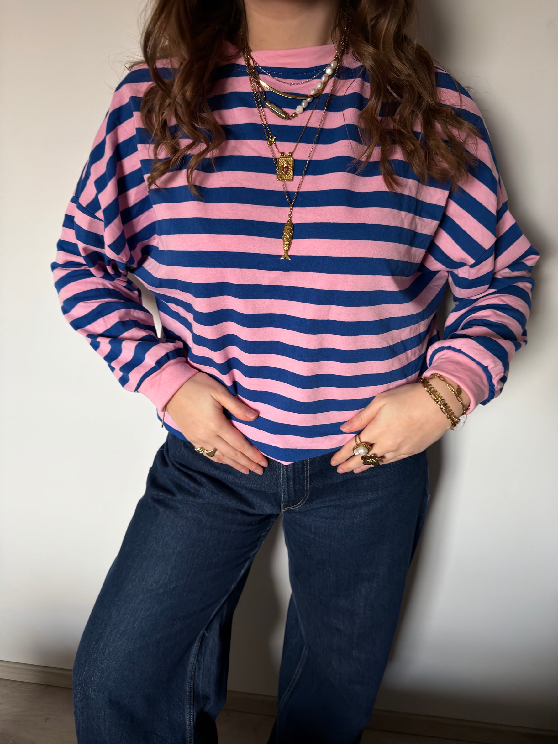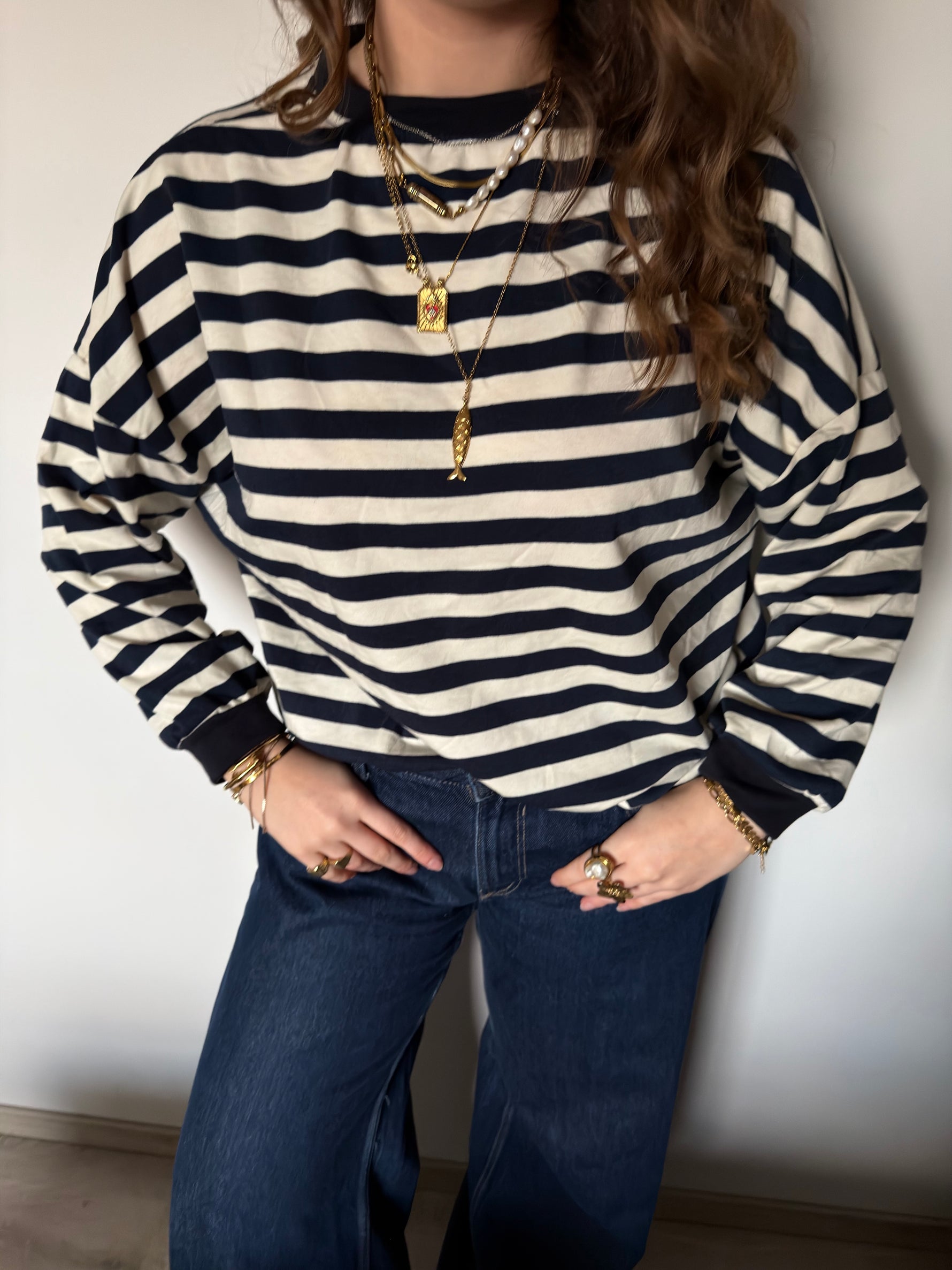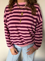De Rosie Sweater is een zachte, gestreepte sweater met een vrouwelijke en comfortabele uitstraling. De soepele jersey stof draagt prettig en de elastische boord aan de onderkant zorgt voor een mooie, licht blousende pasvorm. Dankzij de ronde hals en lange mouwen is dit een ideaal item voor elke dag.