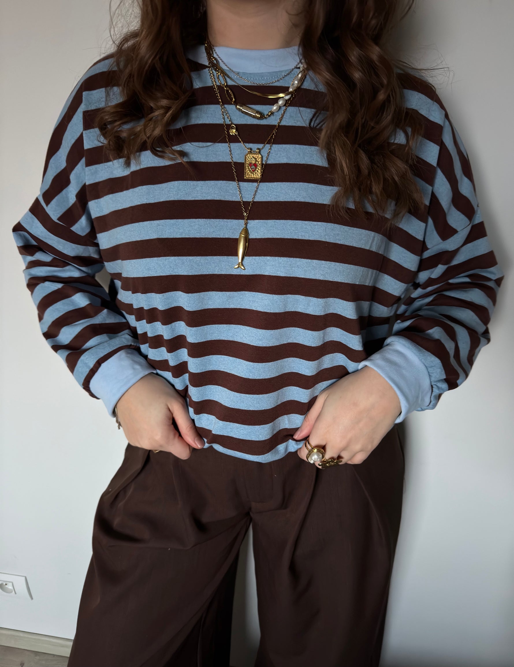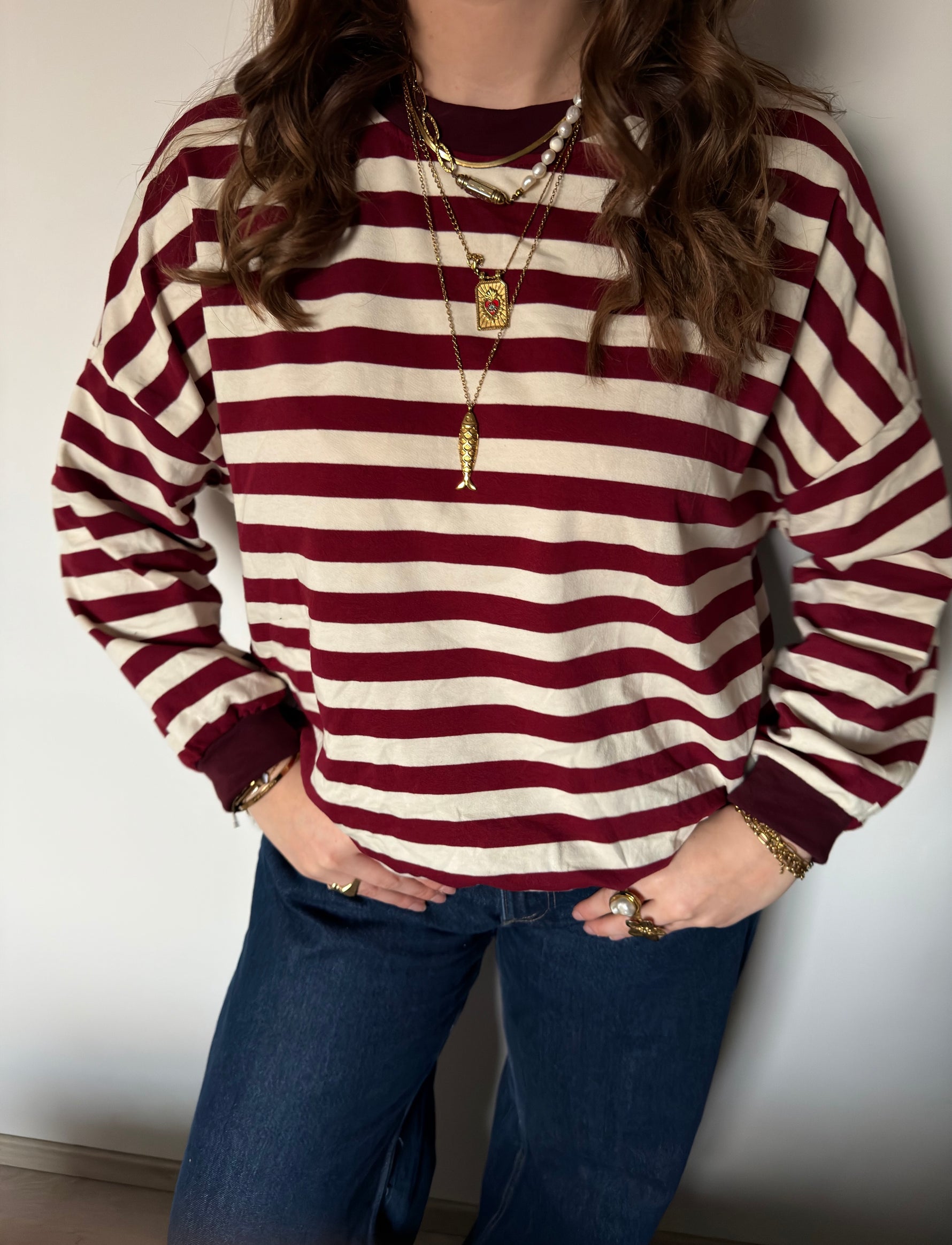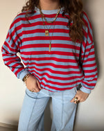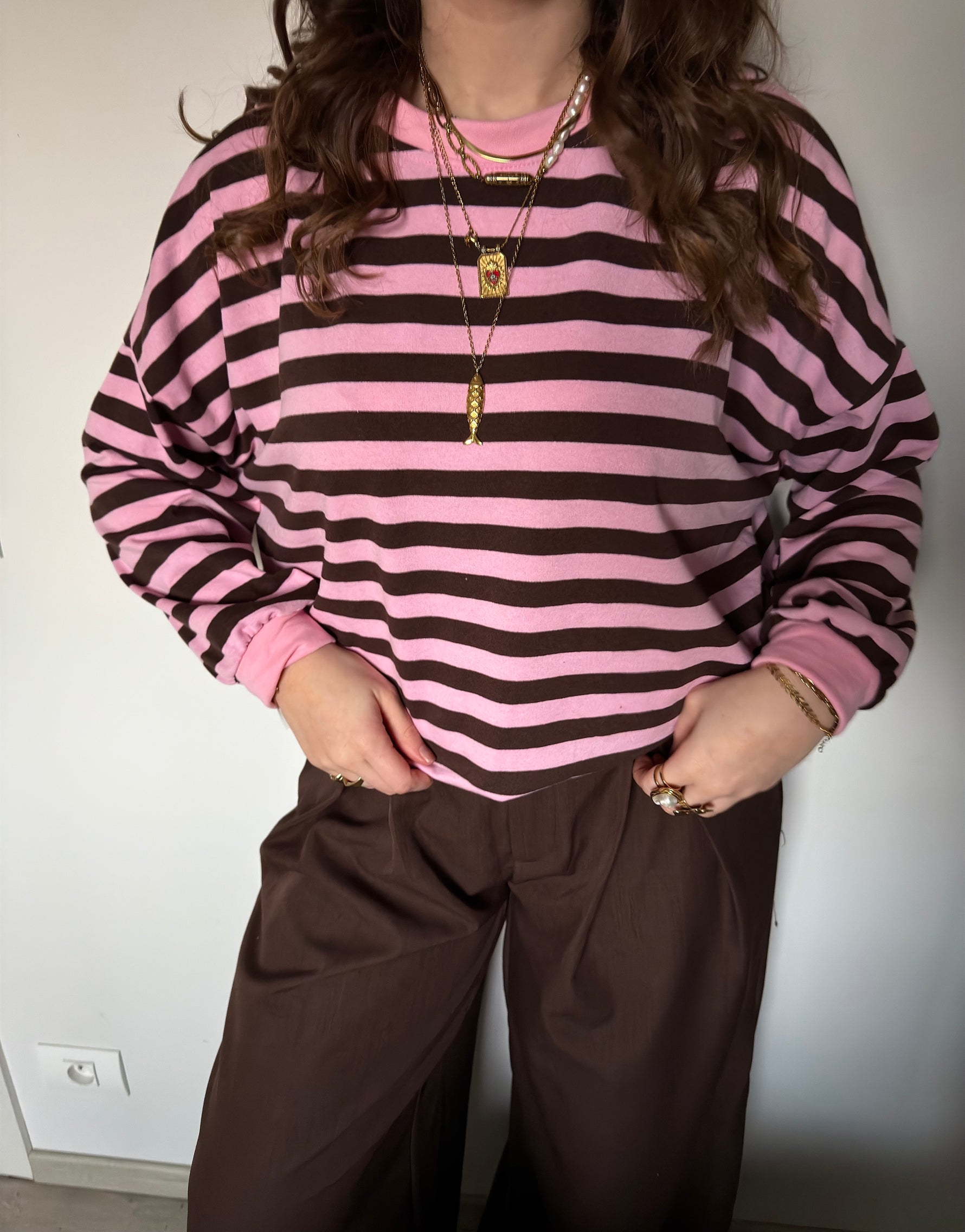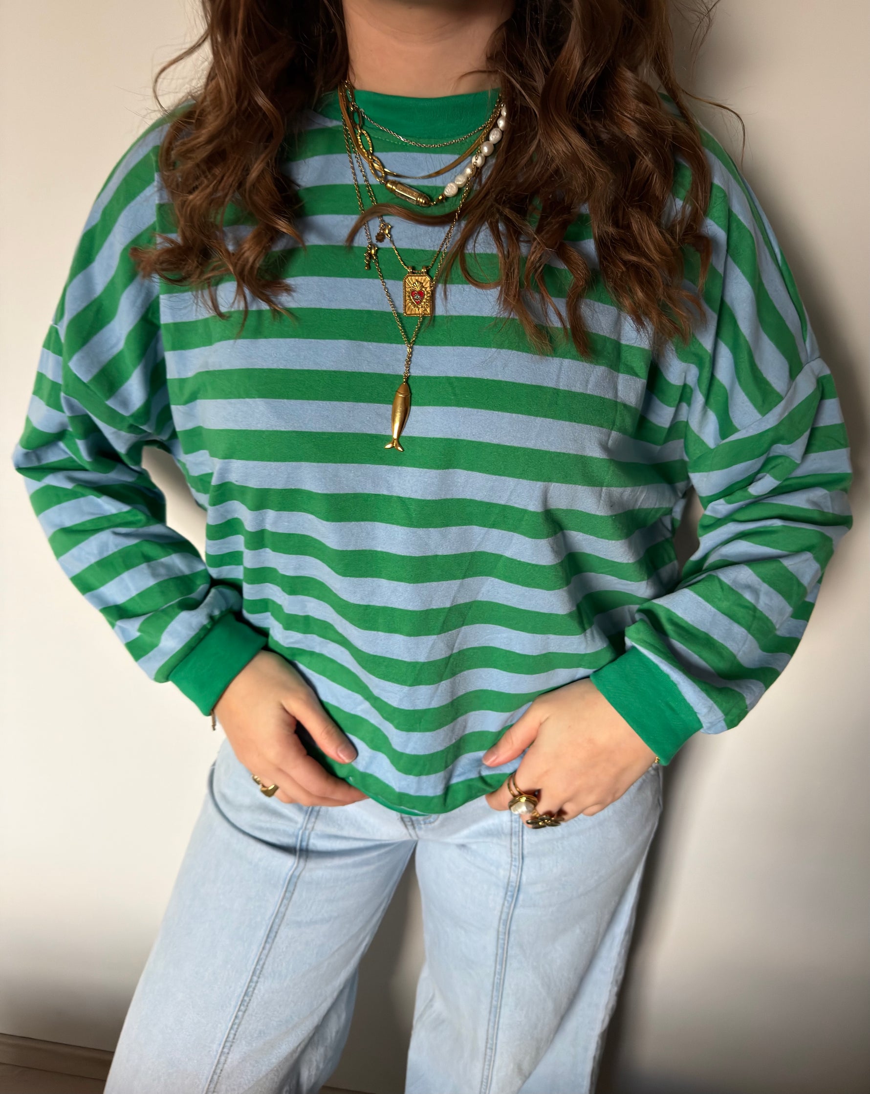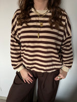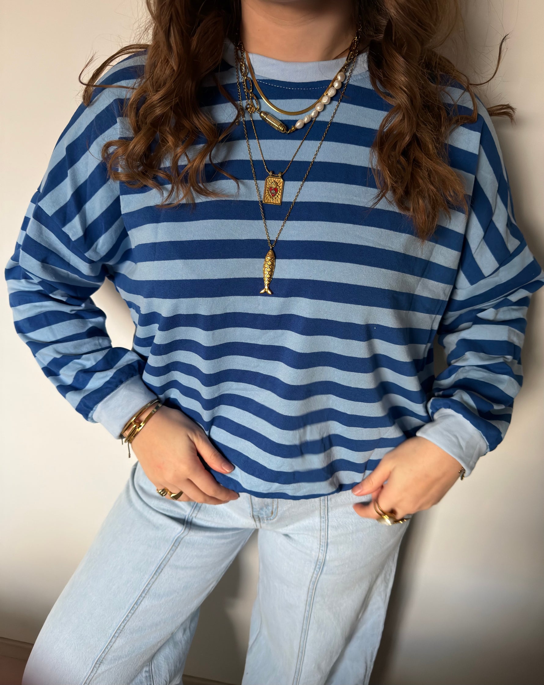 De Rosie Sweater is een zachte, gestreepte sweater met een vrouwelijke en comfortabele uitstraling. De soepele jersey stof draagt prettig en de elastische boord aan de onderkant zorgt voor een mooie, licht blousende pasvorm. Dankzij de ronde hals en lange mouwen is dit een ideaal item voor elke dag.